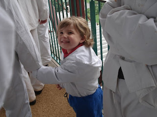 Todos sem exceção tiveram que usar essas roupas, até as crianças fofas.