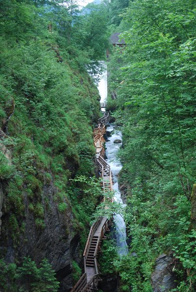 Ao final da passarela recebemos como recompensa essa vista linda do lago Zeller See. O silêncio nesse ponto é tão marcante quanto o barulho das cachoeiras. Ainda bem que a chuva deu uma trégua.