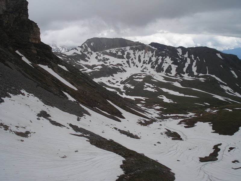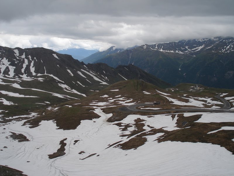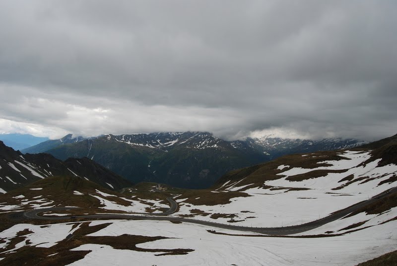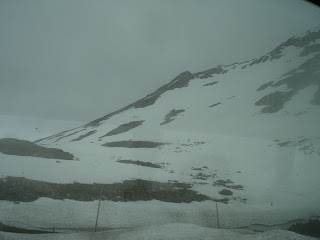 Você deve estar se perguntando "e a neve?". A neve aconteceu quando estávamos dentro do ônibus logo depois que deixamos o Kaiser-Franz-Josefs-Höhe. A garoa gelada que caía quando deixamos o centro de visitantes se transformou em uma neve fininha e leve como uma pluma. Aquela neve pairava no ar e caia em camera lenta. Mas a medida que o ônibus foi descendo a montanha, a neve foi se transformando em garoa de novo.