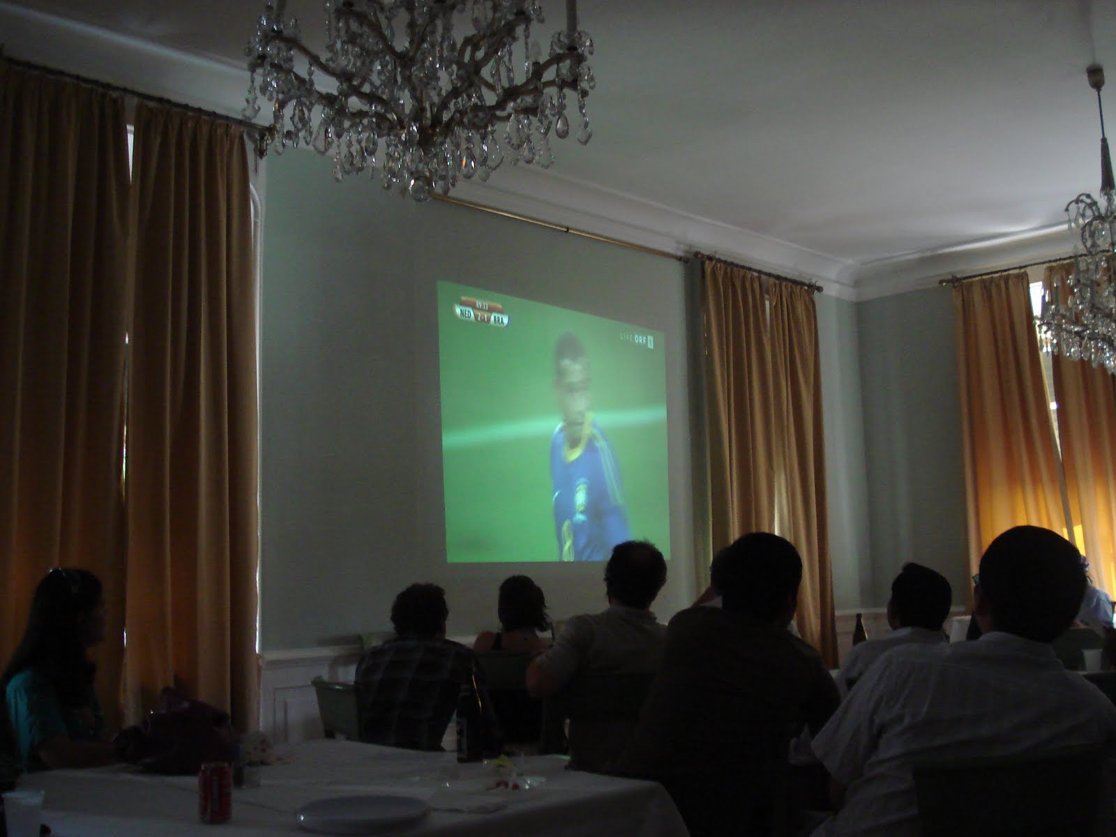 Ao mesmo tempo estava acontecendo o American Day Party organizado pelos americanos. O local do jogo dessa vez não foi escolhido a dedo. Ele foi improvisado através de um projetor em um dos quartos do Schloss Restaurante, mesmo local onde estava acontecendo o American Day e próximo do IIASA. Meus amigos americanos estavam cuidando da festa e também não estavam assistindo a partida.